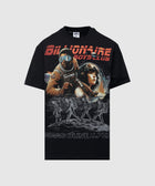 Oversized-fit short sleeve cotton knit shirt. Crewneck. Graphic signature cosmic theme graphic at front and back. Graphic logo texts with texts at front.