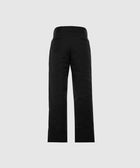 Relaxed-fit high rise work pant. Wide tunnel belt loops. Two slit pockets at front. Two welt pockets at back. Tapered leg. Woven logo tag at back. Hook and eye with zipper closure at front.