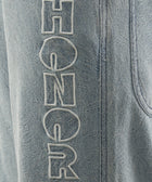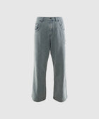 Relaxed-fit wide-leg denim pants. Five-pockets. Embroidered logo text at side. Contrast stitching throughout. Zip-fly closure at front.