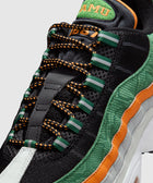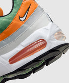 Low top sneakers. Leather toe. Layered synthetic textile on the side panels wrapping around the heel counter. Front lacing. Mesh tongue. Foam midsole with exposed air unit at the heel. Rubber outsole.