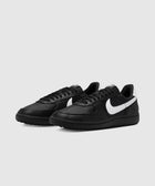 Low top sneakers. Leather upper. Leather overlays around the toe, eyelet panels, and heel counter. Leather logo motif patches stitched on the side panels, and on the back of the collar. Logo stamped on the back of the collar. Front lacing. Leather tongue with a polyester logo tag stitched at the top. Rubber midsole. Rubber outsole.