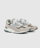 Low top sneakers. Suede, and mesh upper with suede accent overlays. Front lacing. Padded mesh tongue with a leather overlay at the top. Embroidered branding at the center of the tongue. Composite foam midsole. Rubber outsole.