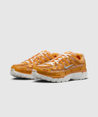 Low top sneakers. Polyester mesh upper. Layered synthetic textile overlays around the side panels, eyelet panels, and toe box. Suede overlays on the toe, and side panels. Motif-shaped patches embroidered on the side panels. Padded nylon mesh tongue. Front lacing. Composite foam midsole. Rubber outsole.
