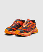 Low top sneakers. Mesh underlay throughout the upper. Synthetic textile overlays around the toe, eyelet panels, side panels, and heel counter. Synthetic textile logo patches stitched on the side panels with graphic print. Mesh tongue with a synthetic textile patch at the top. Front lacing. EVA foam midsole Rubber outsole. Overdyed all throughout.
