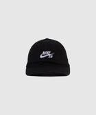 Cotton canvas baseball cap. Curved brim. Six-panels. Embroidered eyelets at top. Embroidered logo print at front. Adjustable strap at back.