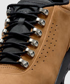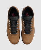 Low top boots. Leather upper. Leather overlays around the toe, eyelet panels, side panels, heel counter, and collar. Front lacing with metal eyelets. Padded leather tongue. Composite foam midsole with a full-length air unit. Rubber outsole.