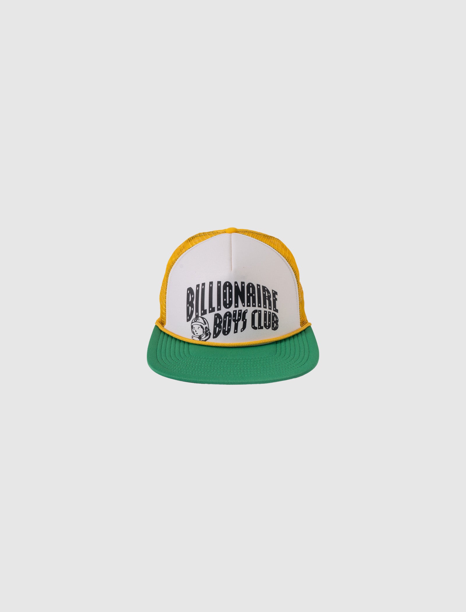 Trucker hat. Neoprene front panel. Printed graphic across the front. Mesh back panels. Curved nylon brim. Snap-back closure.