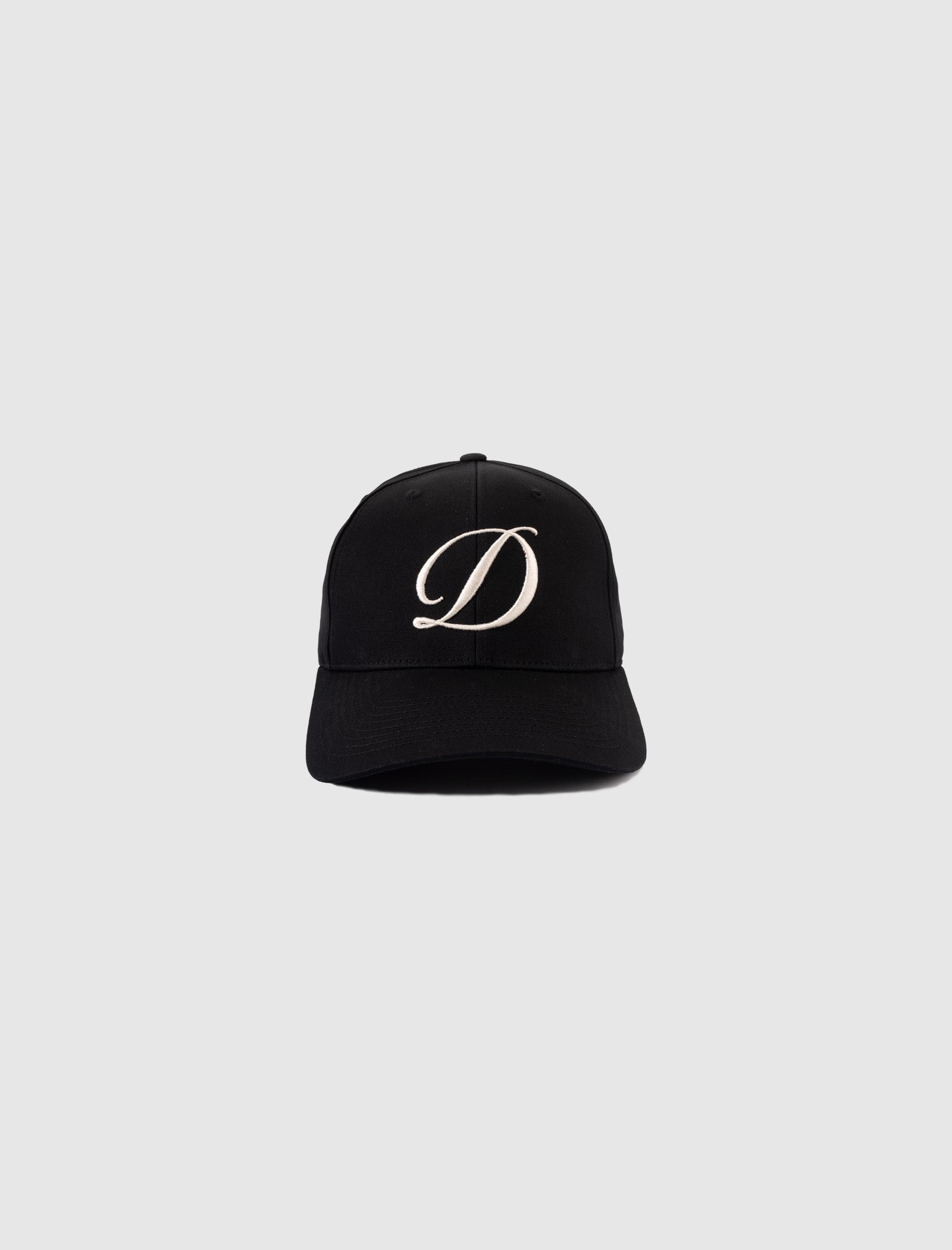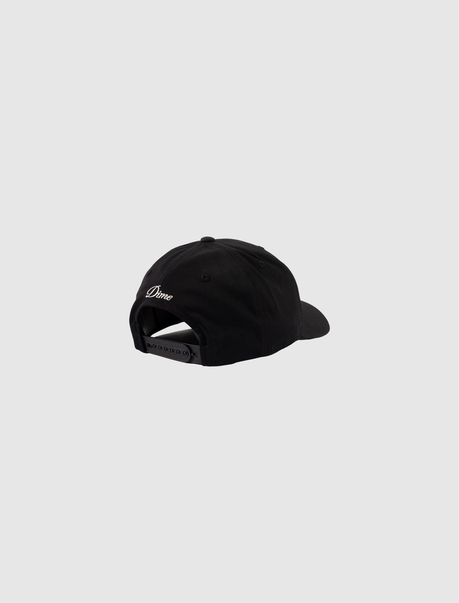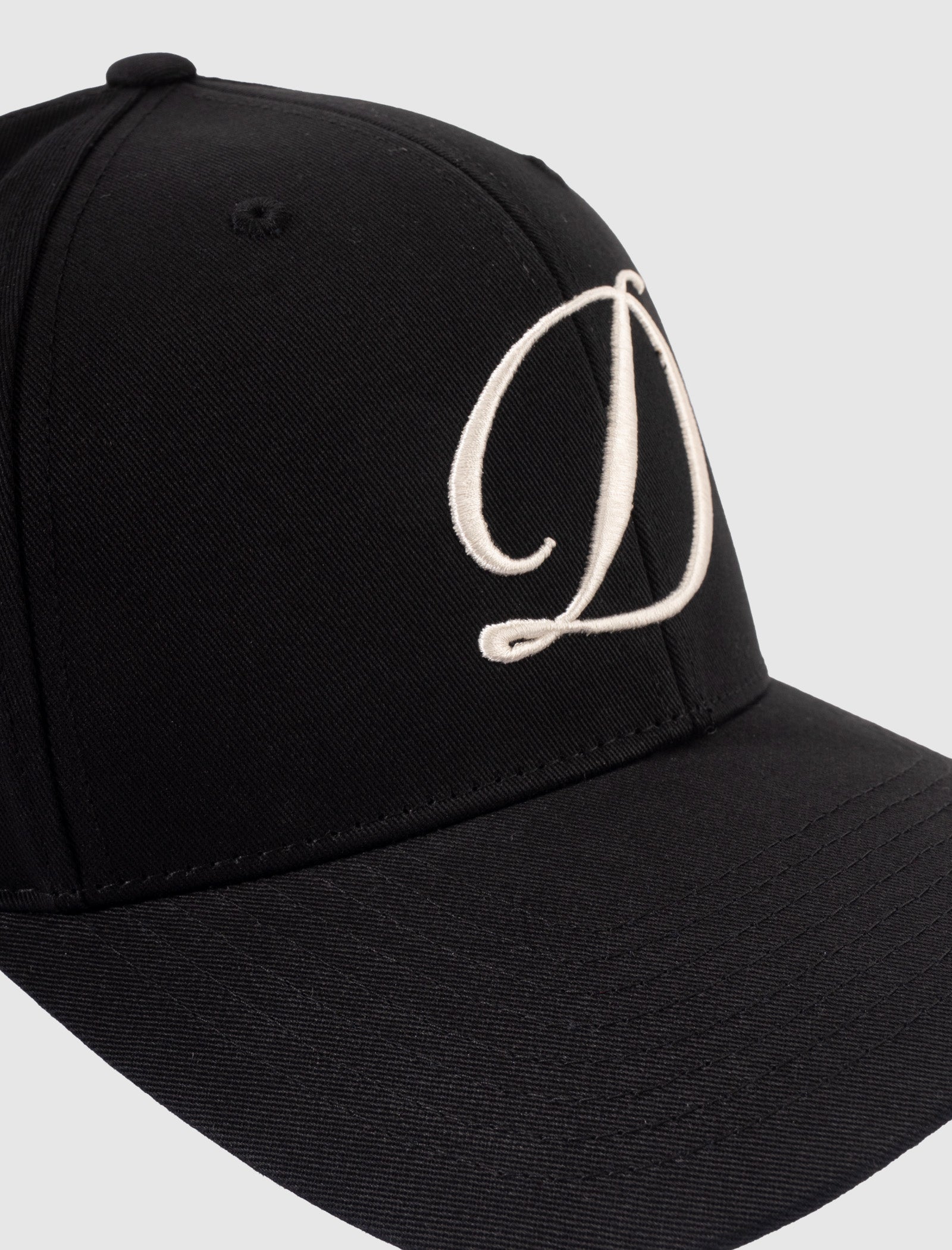 Cotton snap-back cap. Reinforced front panels. Embroidered script logo at the center. Curved brim. Embroidered eyelets around the crown. Plastic snap-back closure.