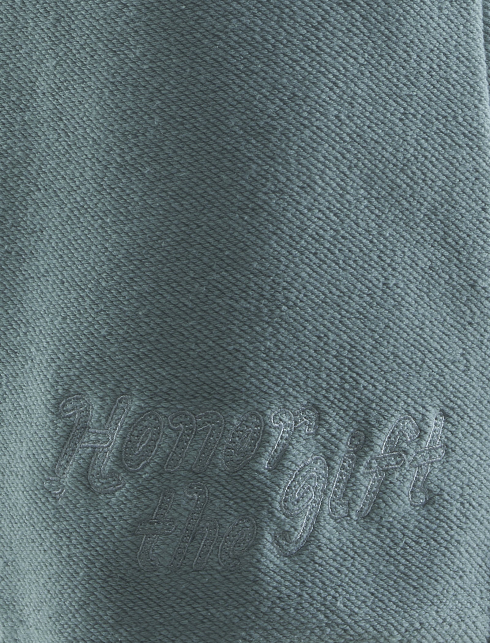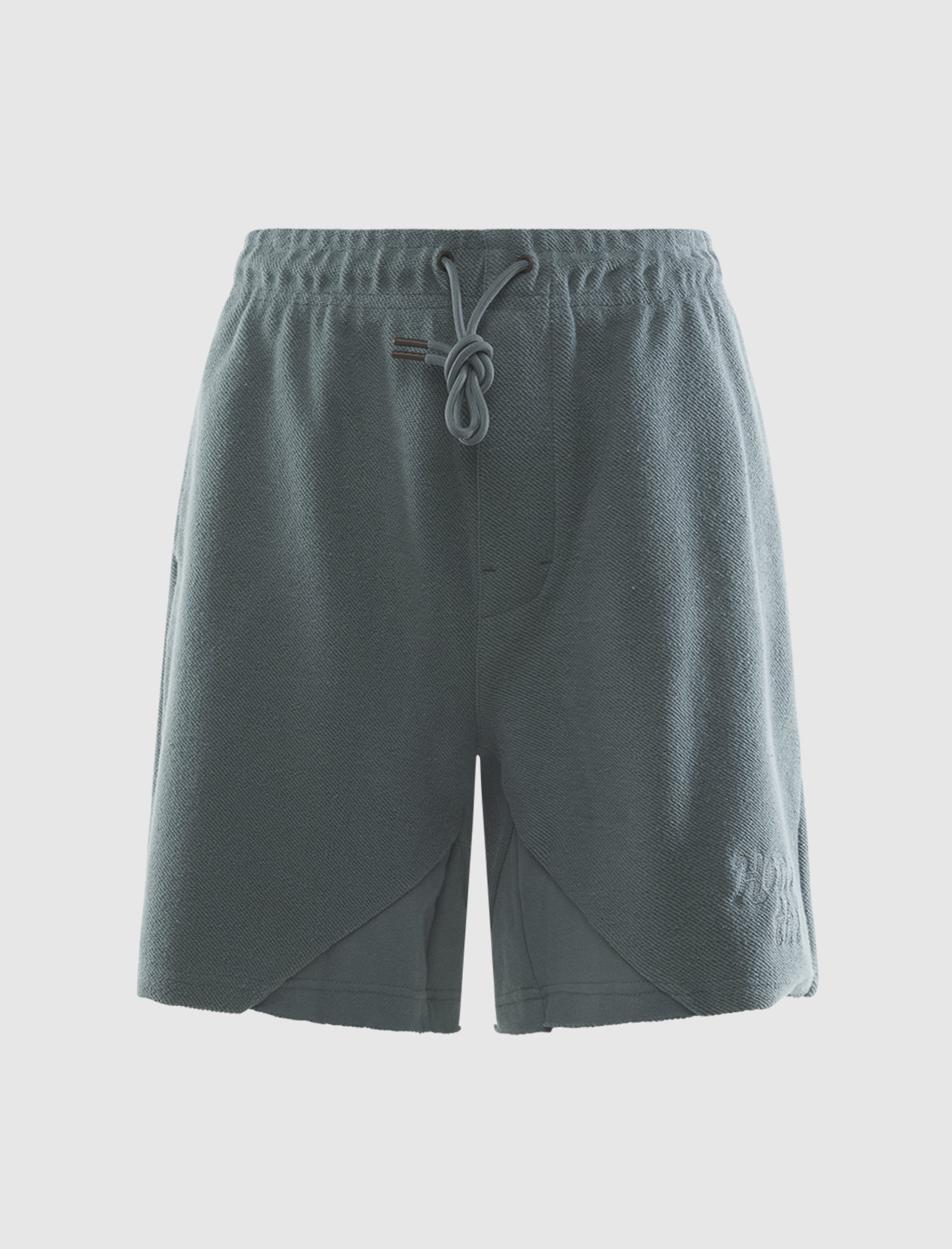 Relaxed-fit heavyweight cotton shorts. Elasticized drawstring waistband. Four pockets. Embroidered logo text above hem. Raw-edge hems.