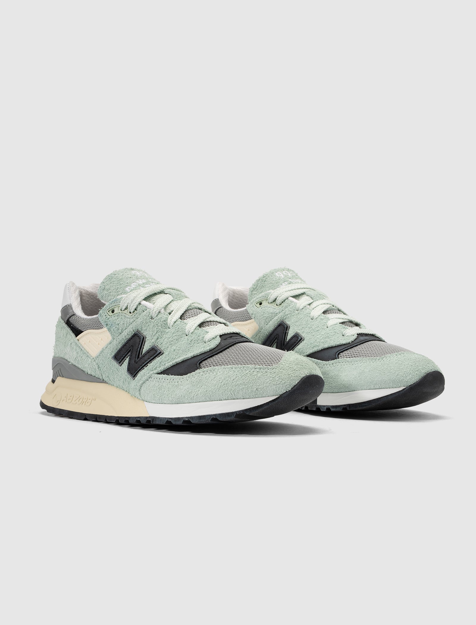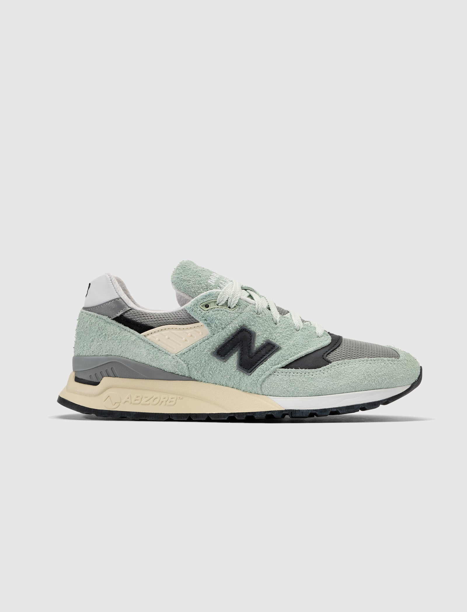 Low-top sneaker. Hairy suede and synthetic mesh. Leather and synthetic TPU accents. Leather logo motif patches stitched on the side panels. Embroidered motifs on the tongue and back of the collar. Front lacing. Soft herringbone textile lining.ABZORB cushioned composite foam midsole. Rubber outsole.